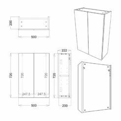 RAK Sagittarius 2-Door Mirrored Bathroom Cabinet 700mm H X 600mm W