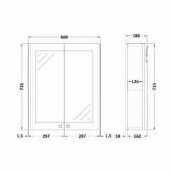 Nuie Classique 2-Door Mirrored Bathroom Cabinet 600mm Wide – Satin Grey