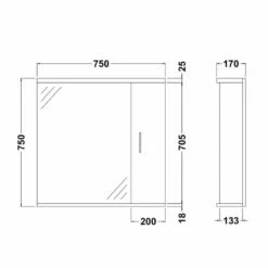 Nuie Athena Mirrored Cabinet (75/25) 600mm Wide – Stone Grey