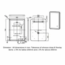 RAK Art Soft LED Illuminated Bathroom Mirror With Demister Pad 700mm H X 500mm W – Matt Black