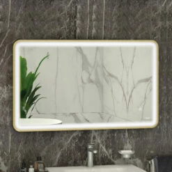RAK Art Soft LED Illuminated Bathroom Mirror With Demister Pad 600mm H X 1000mm W – Brushed Gold