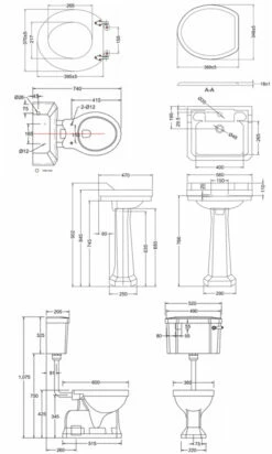 Burlington Bathroom Suite S-Trap Low Level Toilet Lever Cistern