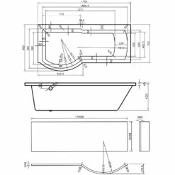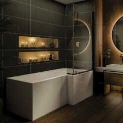 Nuie Square L-Shaped Shower Bath With Front Panel And Screen 1700mm X 700mm/850mm – Left Handed