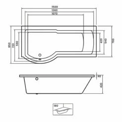 Prestige Adapt P Shaped Shower Bath With Panel And Screen 1500mm X 700mm/850mm Right Handed