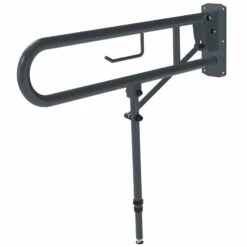 Nymas NymaPRO Lift And Lock Hinged Grab Rail With Toilet Roll Holder And Leg 800mm Length – Grey