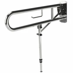 Nymas NymaPRO Lift And Lock Hinged Grab Rail With Toilet Roll Holder And Leg 800mm Length – Polished