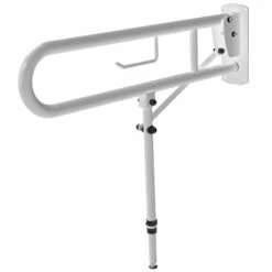 Nymas NymaPRO Lift And Lock Hinged Grab Rail With Toilet Roll Holder And Leg 800mm Length – White