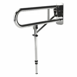 Nymas NymaPRO Lift And Lock Hinged Grab Rail With Toilet Roll Holder And Leg 800mm Length – Satin