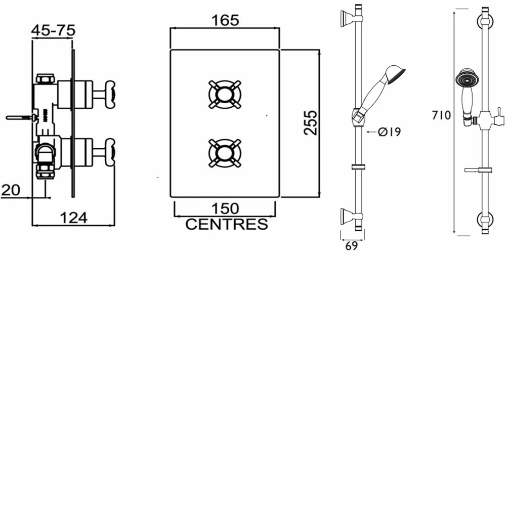 - This Timeless shower pack contains our longest established 1901 range shower valve with a single outlet valve, traditional adjustable riser shower kit with a single function handset and hose