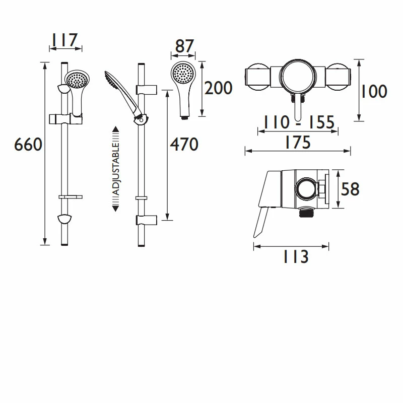 - Adjustable inlets centres between 110mm and 155mm