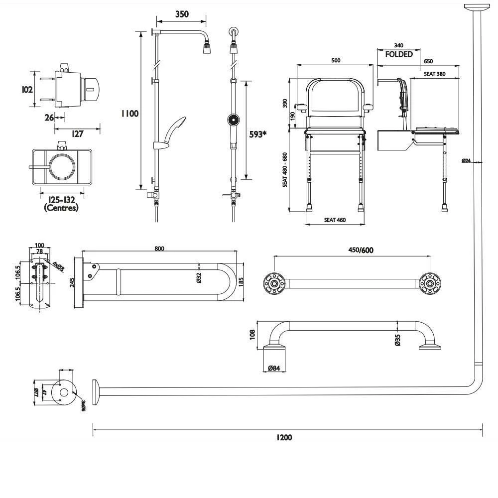 From the Bristan Commercial range, The DocM Showering Pack in Blue Aluminium is a complete pack comprising of a TMV3 shower valve, shower kit with diverter, hose and handset, shower seat, grab rails, shower rail and curtains and hooks. Complies with governments regulations on access to and use of buildings for disabled people.