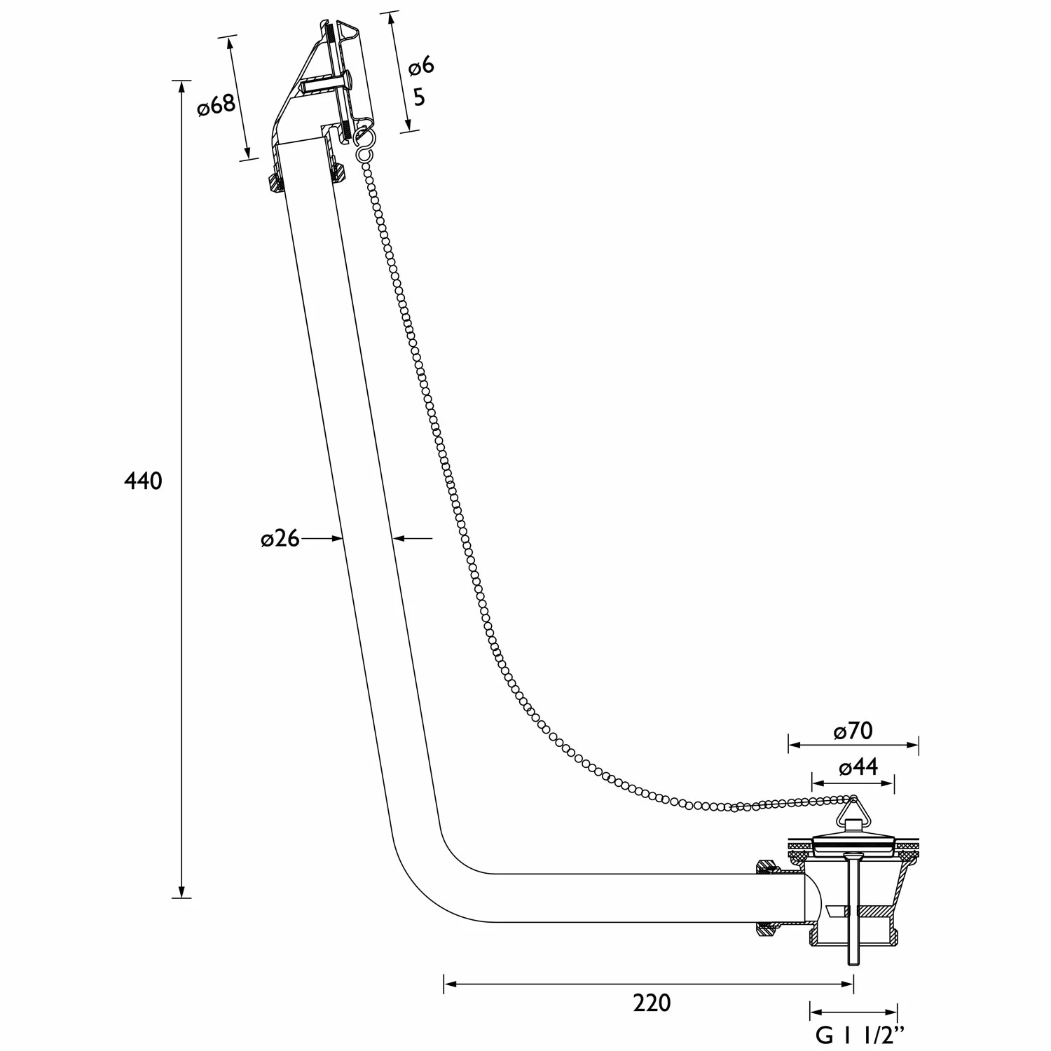- Waste is a plastic ABS construction with brass plug & chain