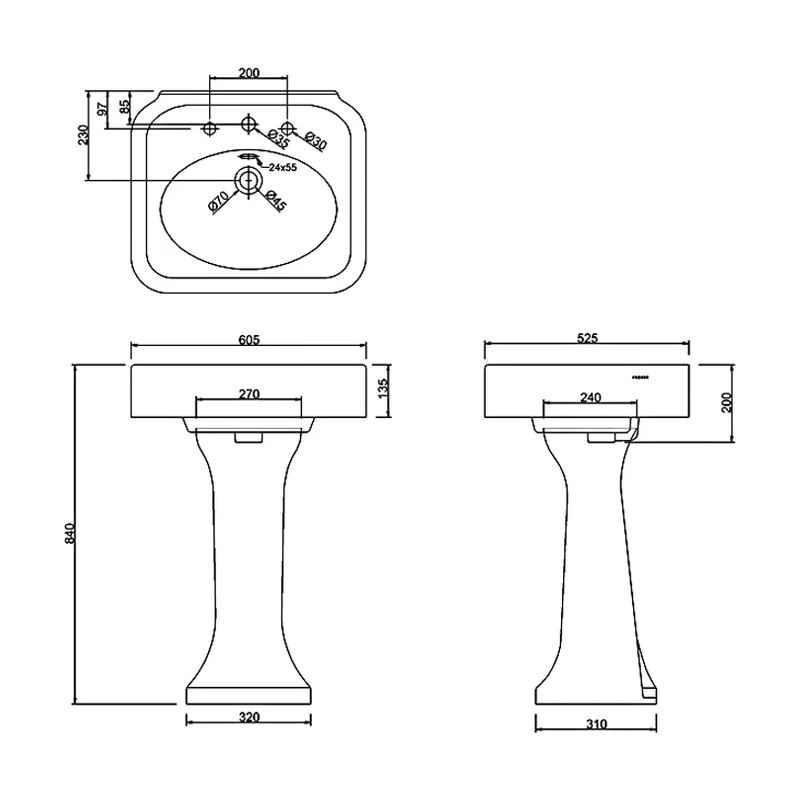 - Supplied with 3 tap-hole perfect for any standard basin taps