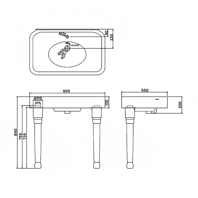 - Supplied with ceramic console legs pair