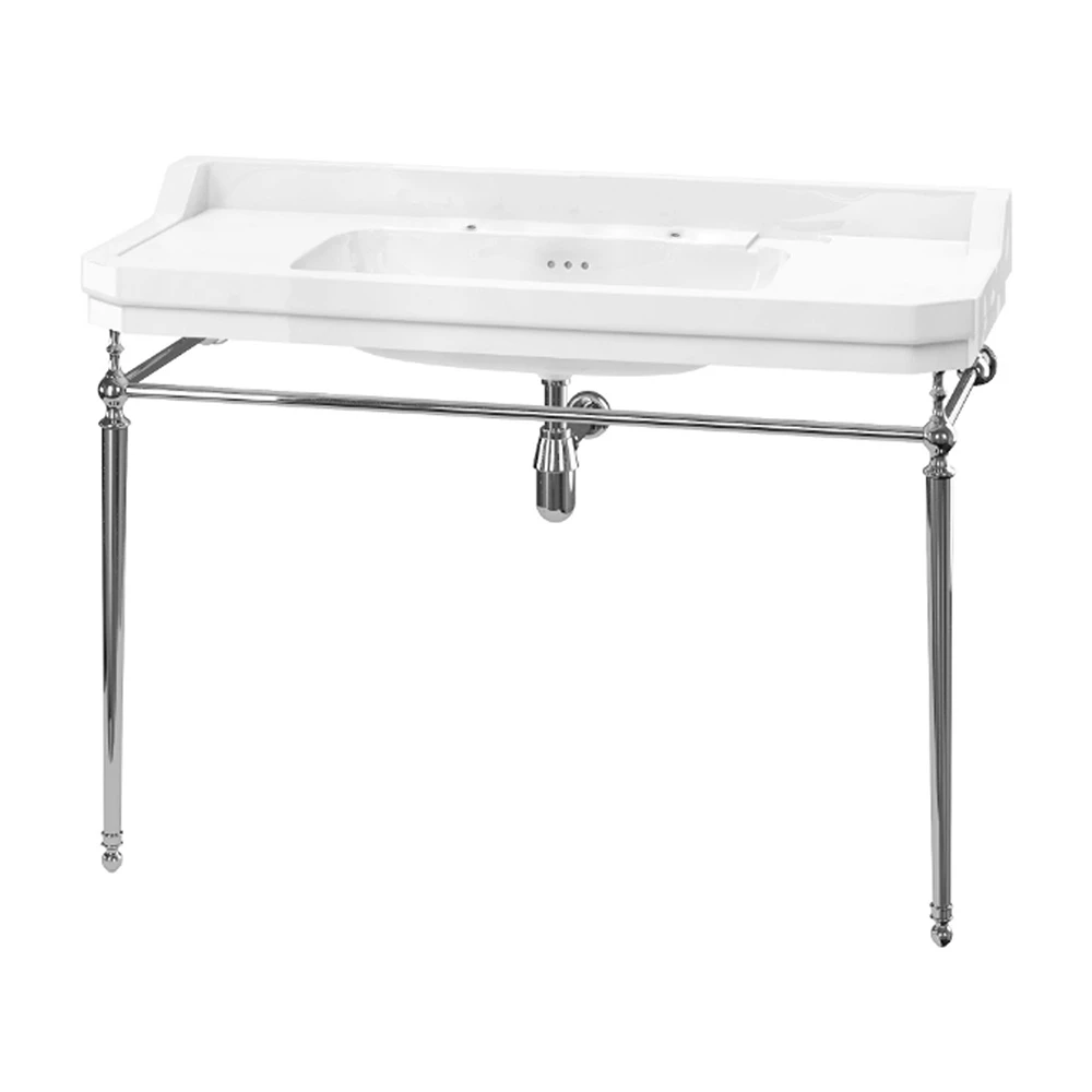 The Burlington Edwardian Basin with Chrome Wash Stand 1200mm Wide, 2 Tap Holes is an model from the Edwardian collection of Basins from Burlington. Burlington bathrooms offers you the opportunity to create a beautiful classical bathroom from designs when Great British design led the way. Supplied complete with an exceptional lifetime guarantee, you can be assured that you are receiving an item of the highest quality.