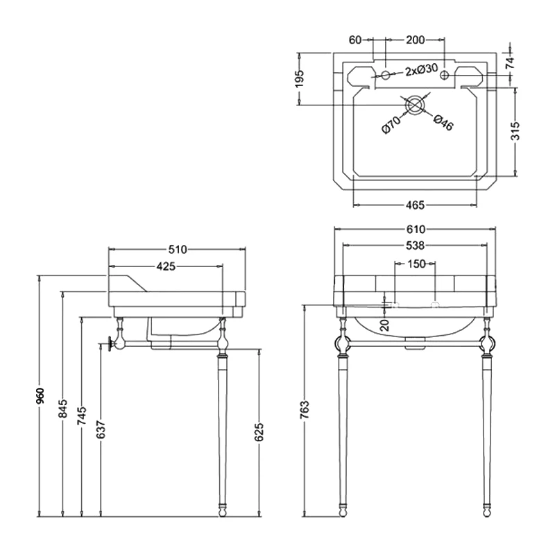 - Basin includes two tap hole – suitable for a standard pair of basin taps