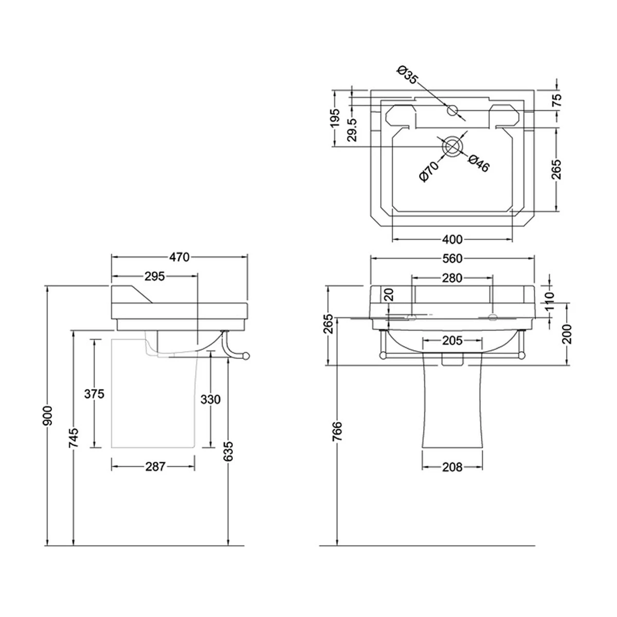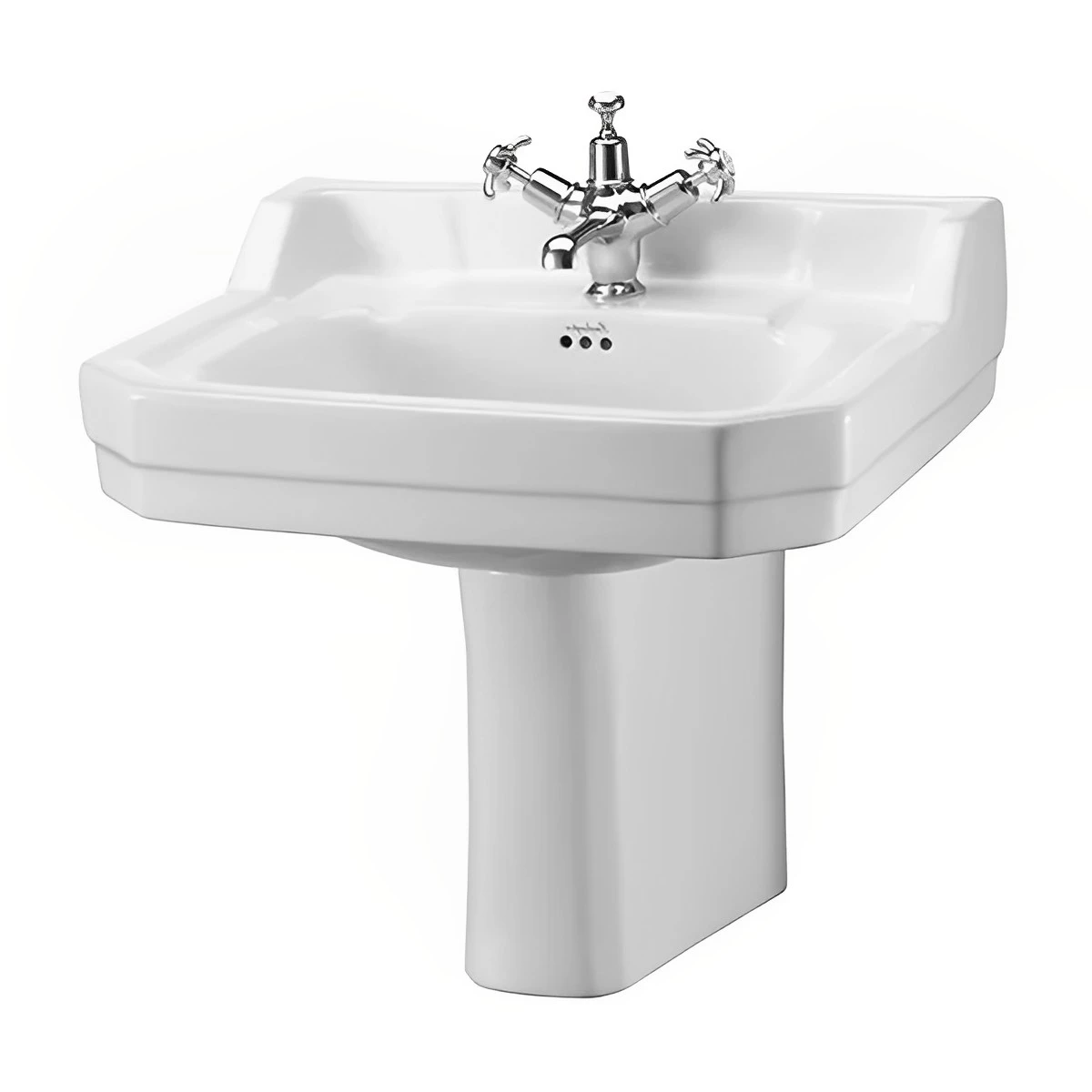 - Includes semi-length pedestal to conceal pipework