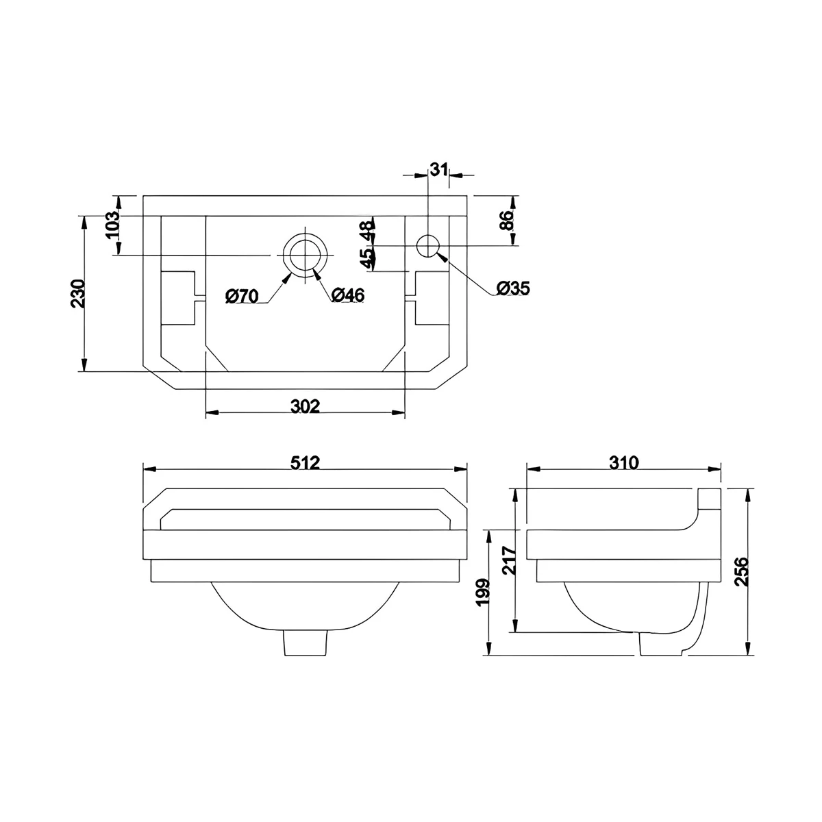 - Taps, waste and bottle trap are not included (See the You May Need)
