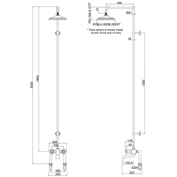 - Supplied with 12 inch Airburst Shower head