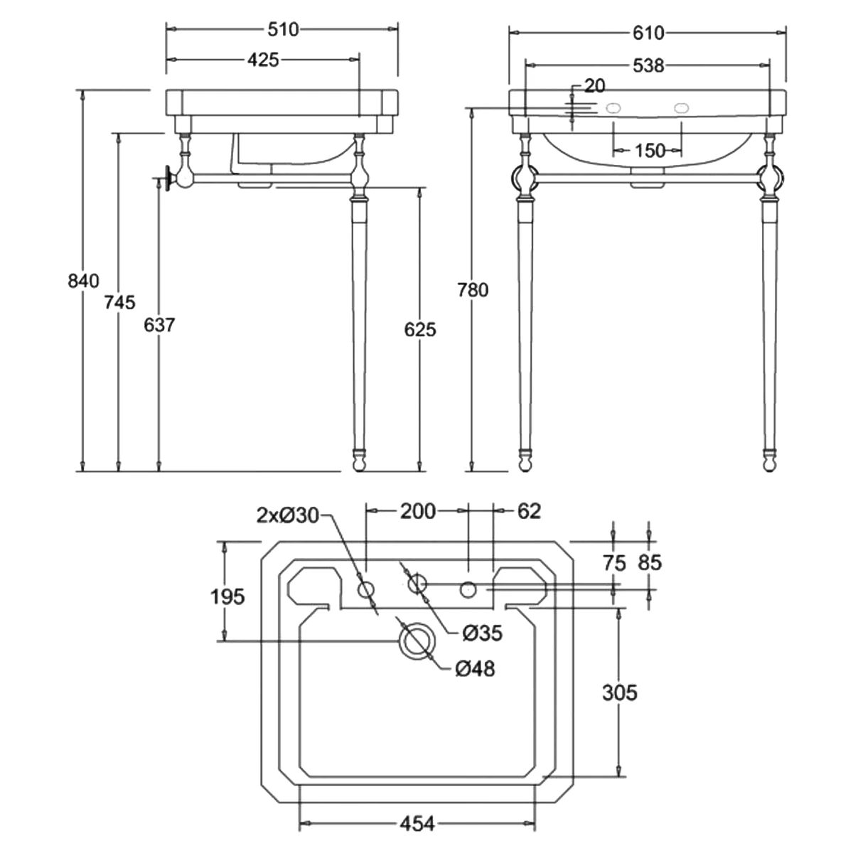 - Supplied with 3 tap-hole perfect for any standard basin taps