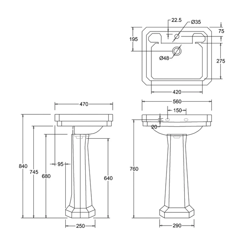 - Supplied with 3 tap-hole perfect for any standard basin taps