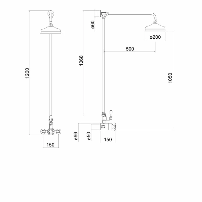 Rigid Riser, Fixed Shower Head, Shower Valve