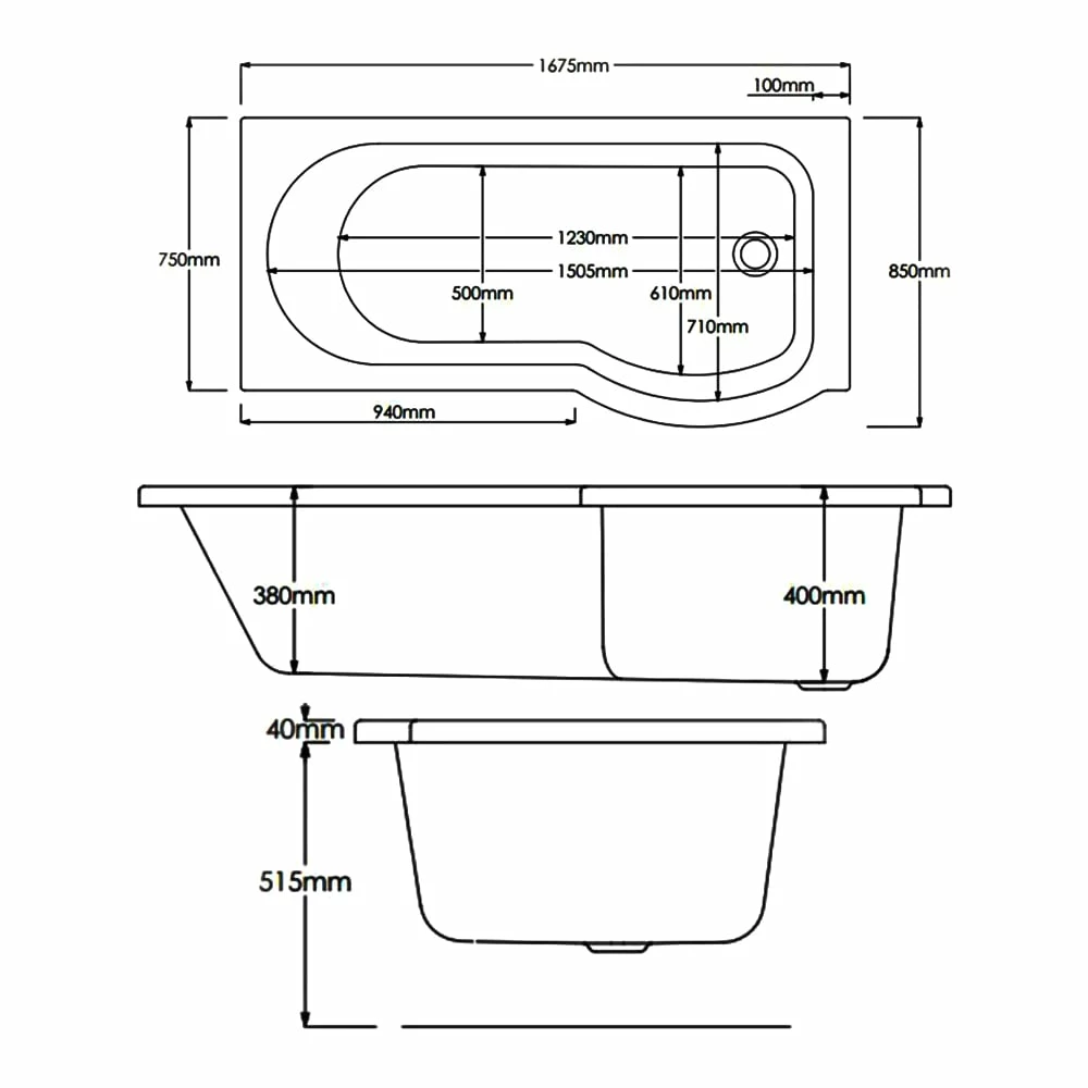- P shaped bath creates extra showering space