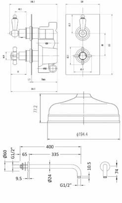 - Rainshower SmartActive 310 Cube head shower set including head shower with 2 sprays, horizontal shower arm 400 mm and head shower rough-in