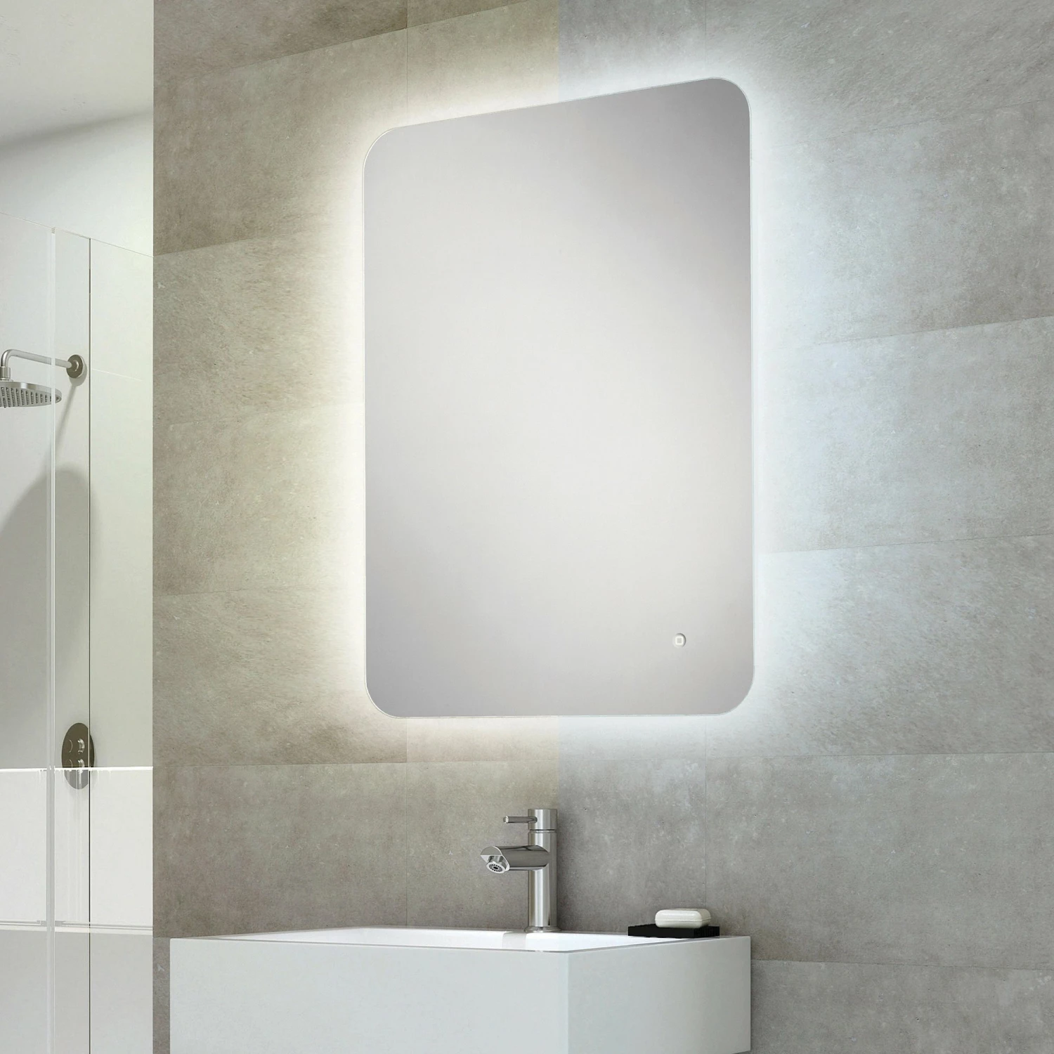 - Fitted with a heated pad that helps to clear condensation from the central area of the mirror