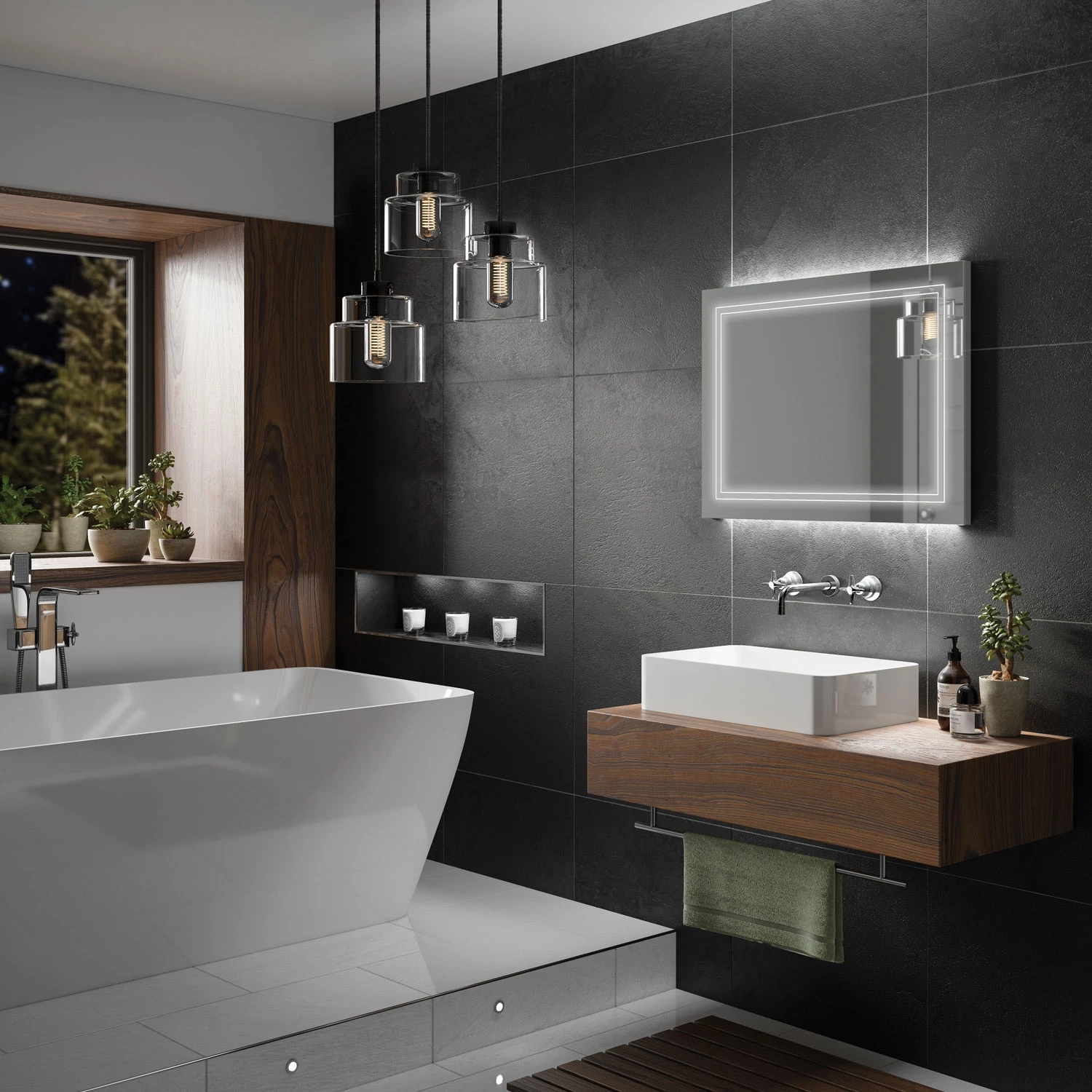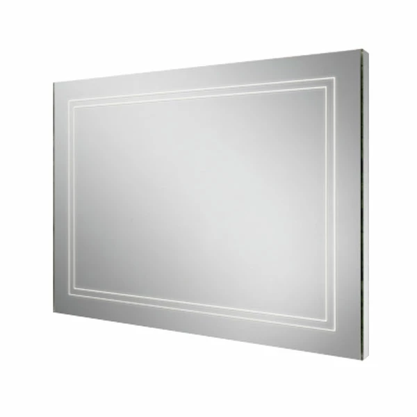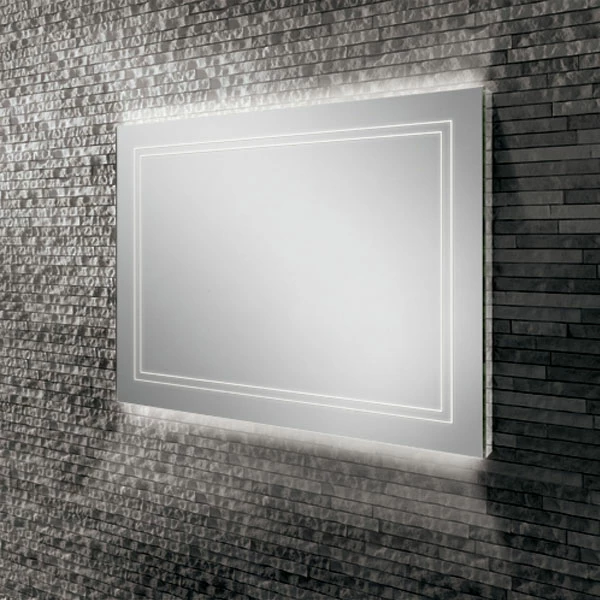 - Portrait bathroom mirror with back-lit Low energy LED with top and bottom ambient lighting