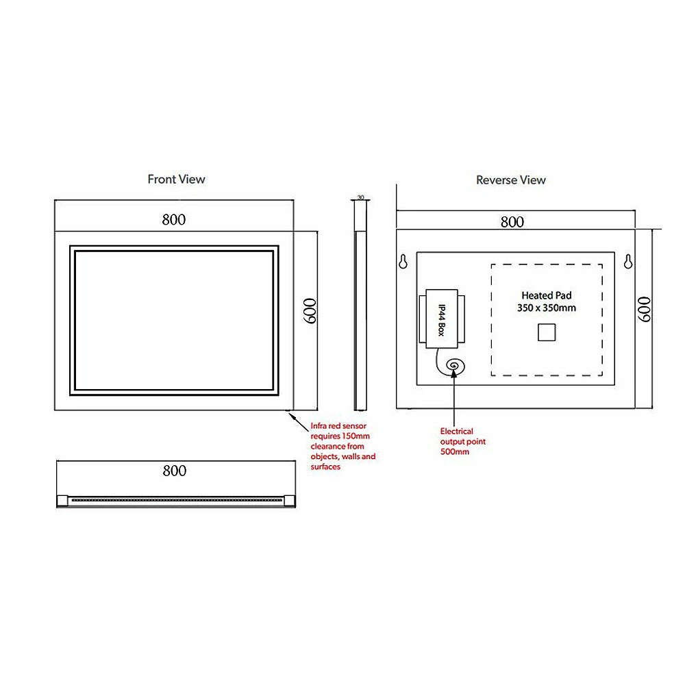 - This Mirror is fitted with a heated pad that helps to clear condensation from the central area of the mirror