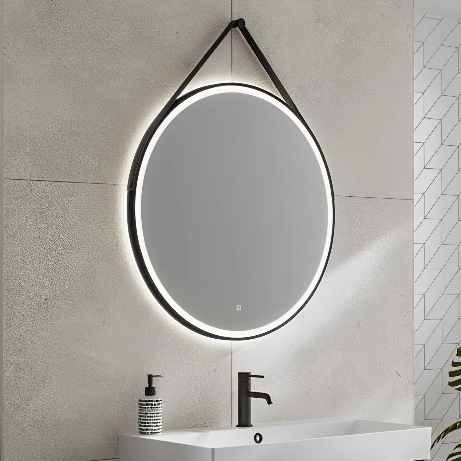 - LED illuminated mirror with matt black frame
