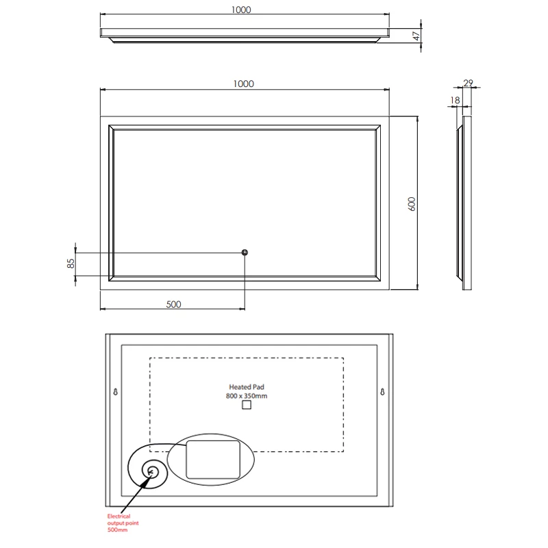 - This Mirror is fitted with a heated pad that helps to clear condensation from the central area of the mirror