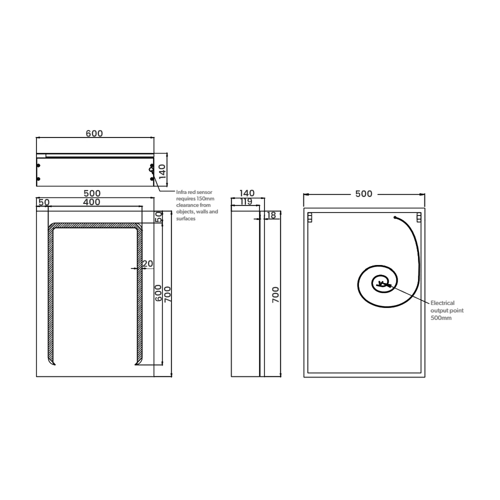- Fitted with a heated pad in the mirrored door