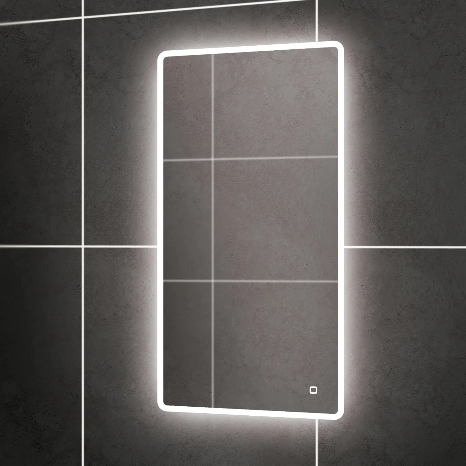 - Portrait steam free LED mirror with ambient lighting, charging socket and light adjusting touch switch