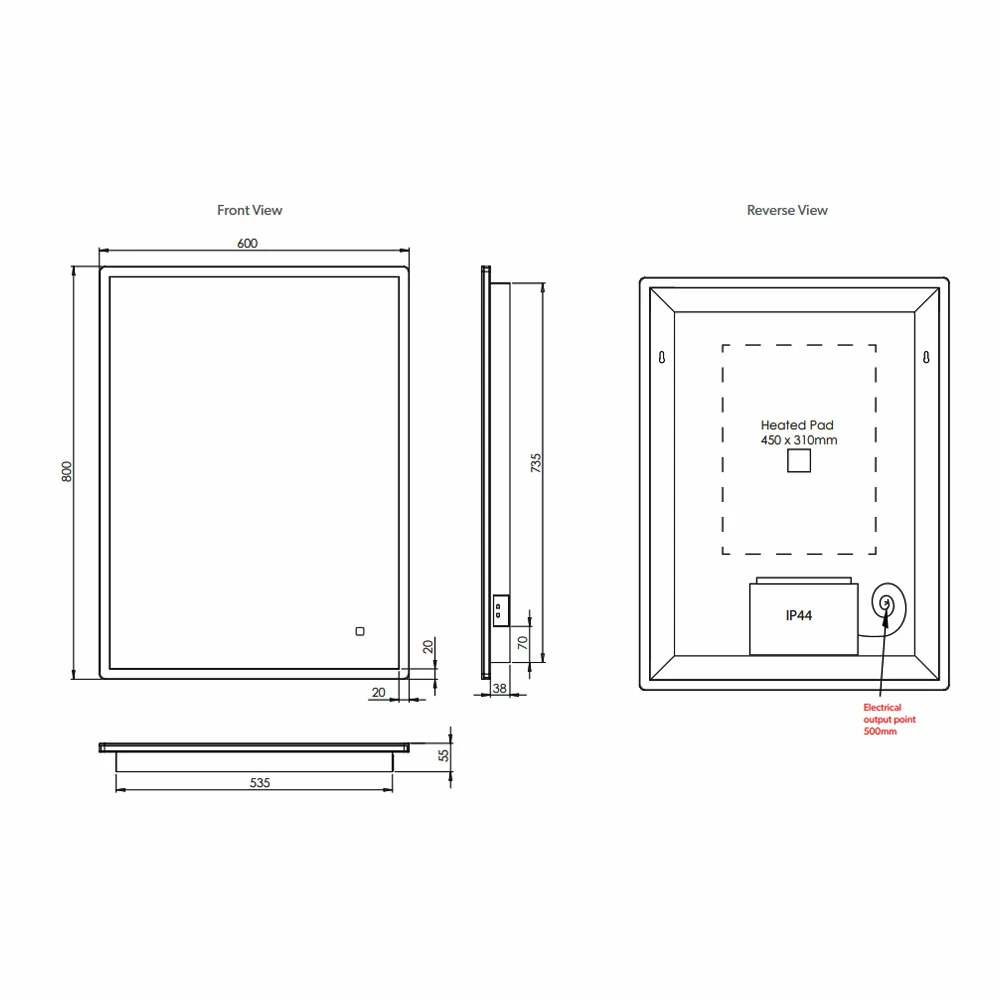 - This Mirror is fitted with a heated pad that helps to clear condensation from the central area of the mirror