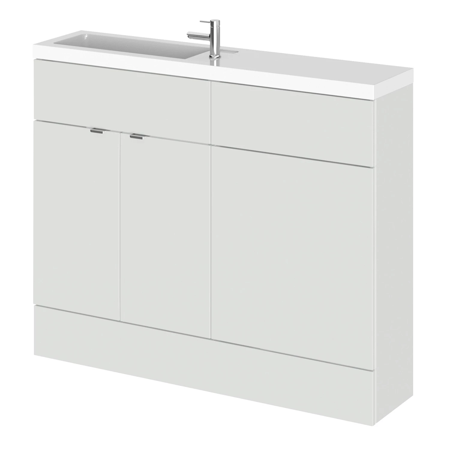 - Achieve the co-ordinated look with our gloss grey mist fitted furniture ranges