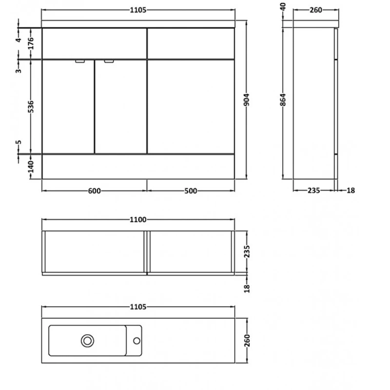 - Includes freestanding vanity unit with slimline polymarble basin and plinth