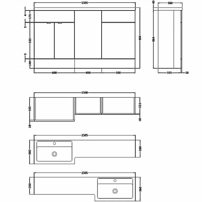 Hudson Reed Fusion LH Combination Unit With 500mm WC Unit – 1500mm Wide – Gloss Grey Mist