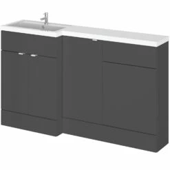 - If you prefer a more glossy finish in your bathroom, why not opt for our fitted furniture in high gloss grey to add a contemporary twist