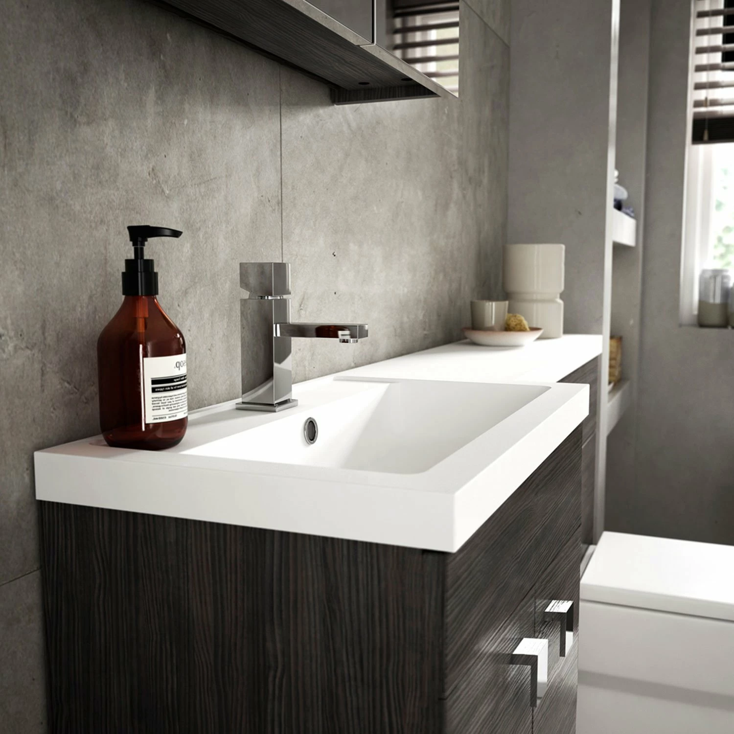 - Colour co-ordinate your unit with a charcoal black woodgrain WC unit
