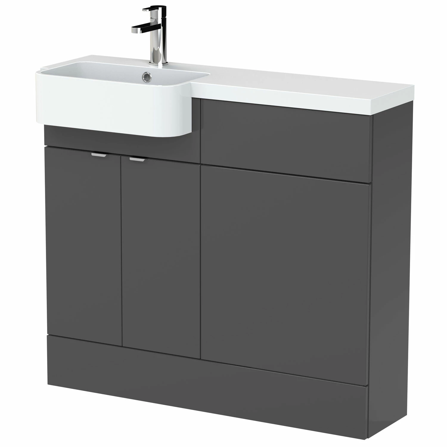 Hudson Reed Fusion LH Combination Unit With Round Semi Recessed Basin 1000mm Wide - Gloss Grey
