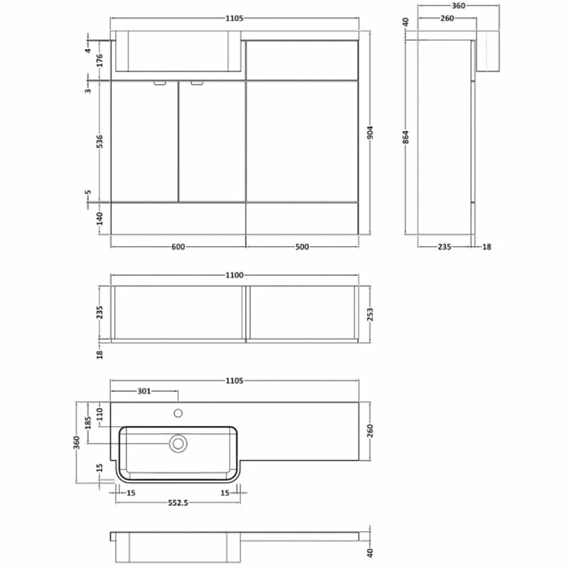 - Supplied Complete with Vanity Unit, WC Unit, LH Round Basin, and 1.25m Continuous Plinth and Handle