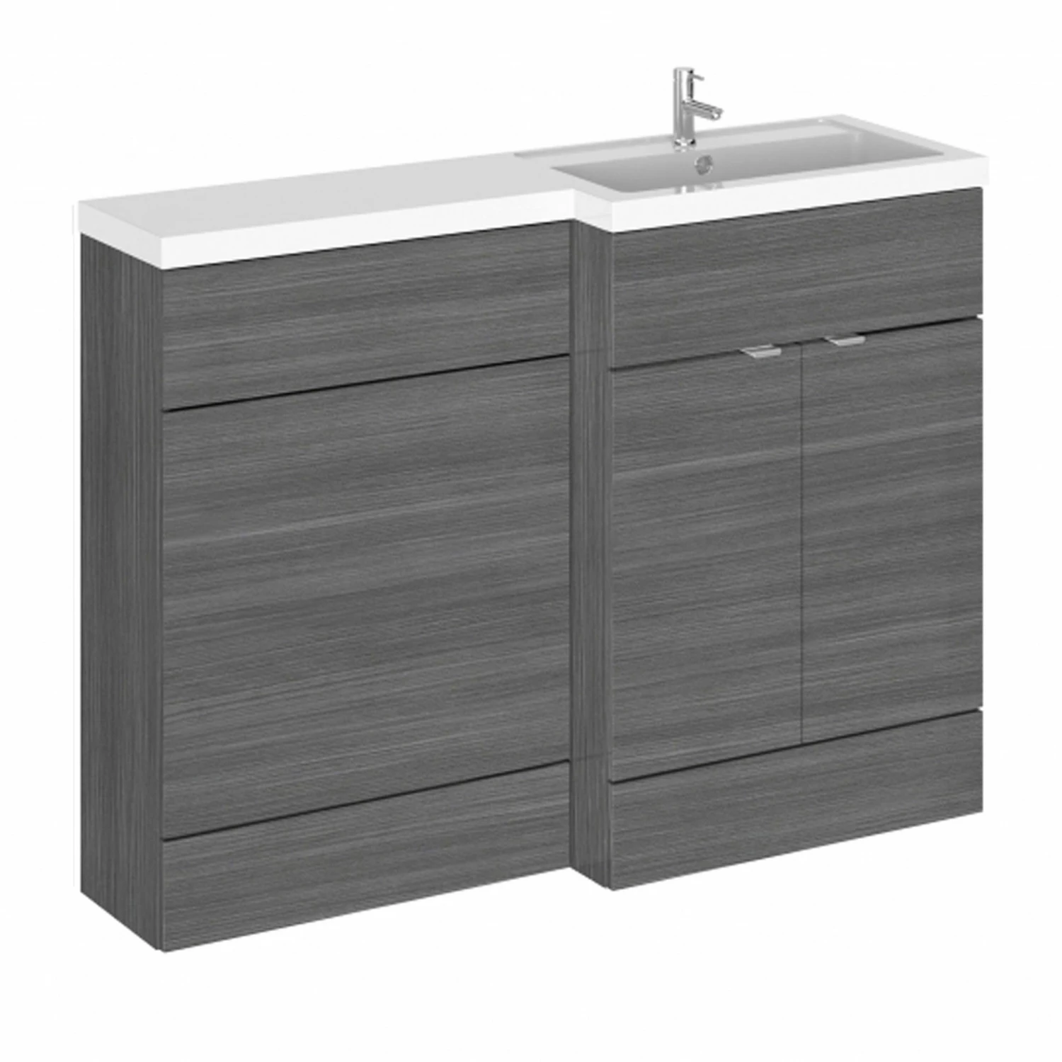 - Includes freestanding vanity unit with right handed L shape basin