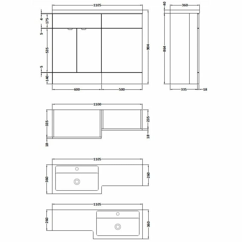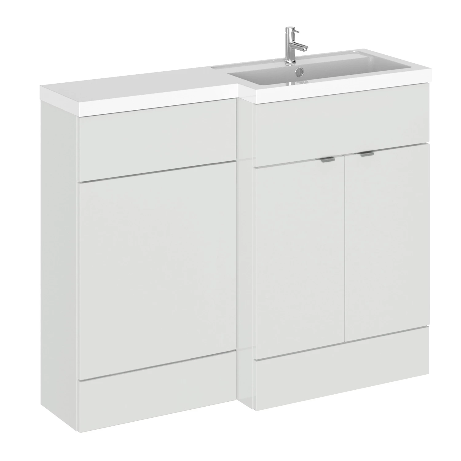 Hudson Reed Fusion RH Combination Unit With L Shape Basin - 1100mm Wide - Gloss Grey Mist -HEATANDPLUMB Sales hudson reed combination grey avola bathroom furniture cbi503 4