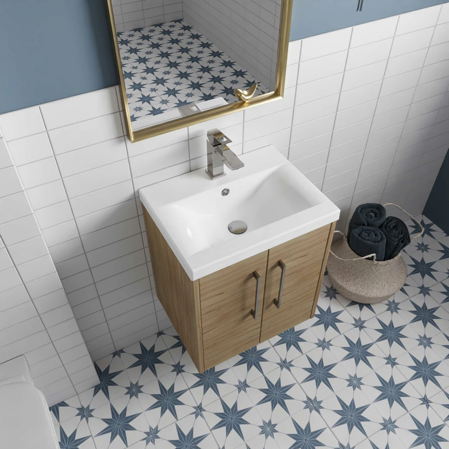 - This unique electric blue finish compliments any modern bathroom and creates a designer look