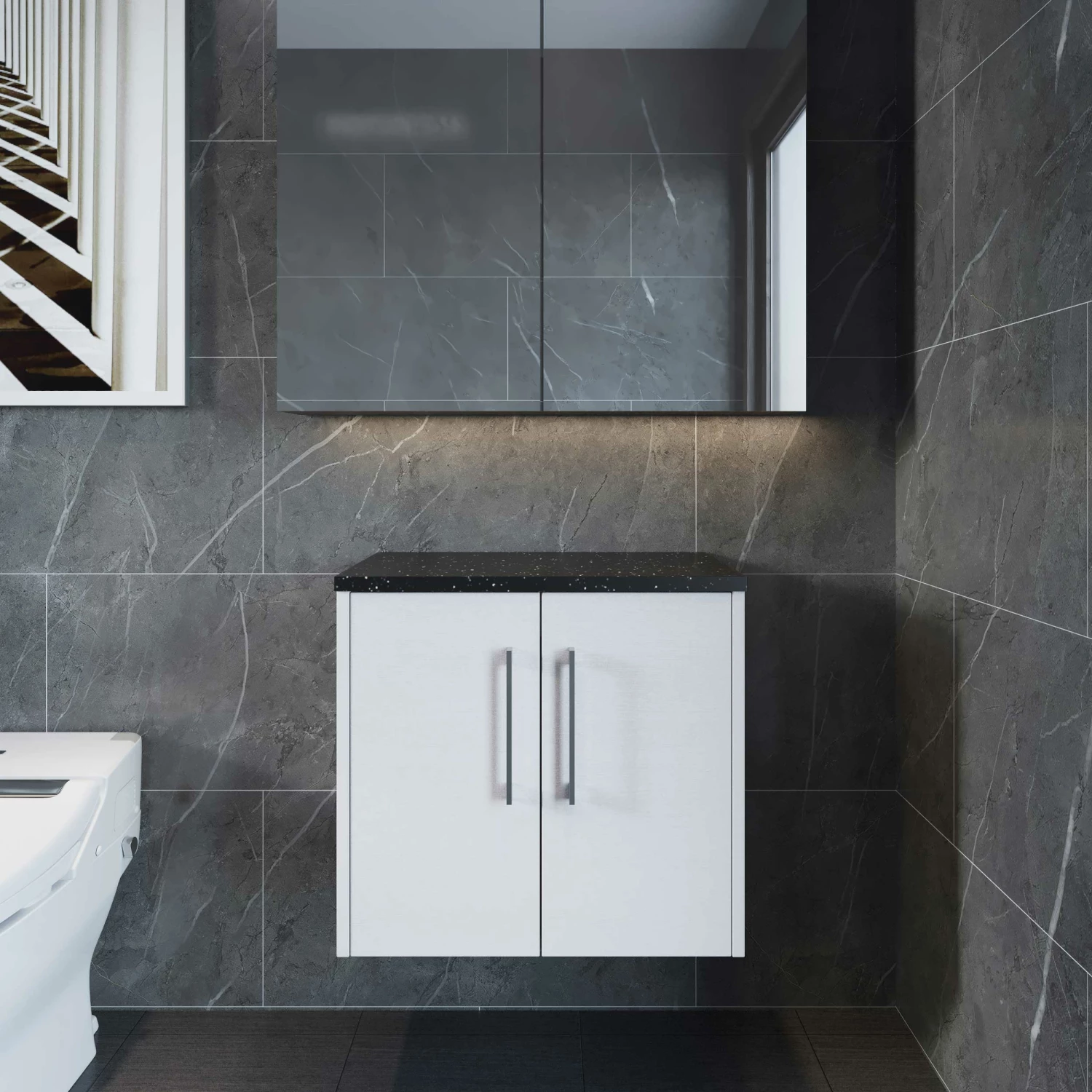 - This wall hung unit creates more space in your bathroom giving the illusion of a bigger bathroom
