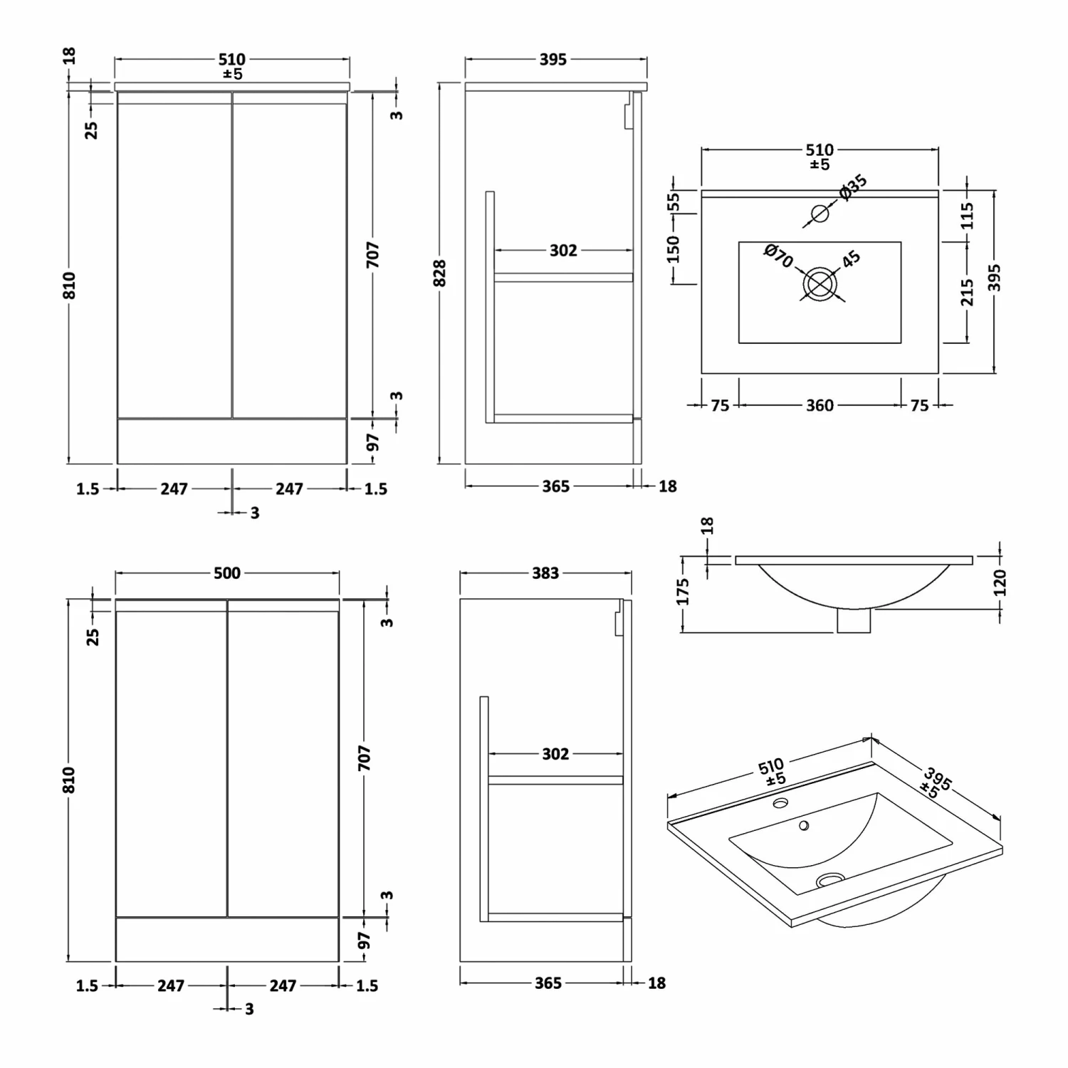 - Vitreous china basin pre-drilled with 1 tap hole