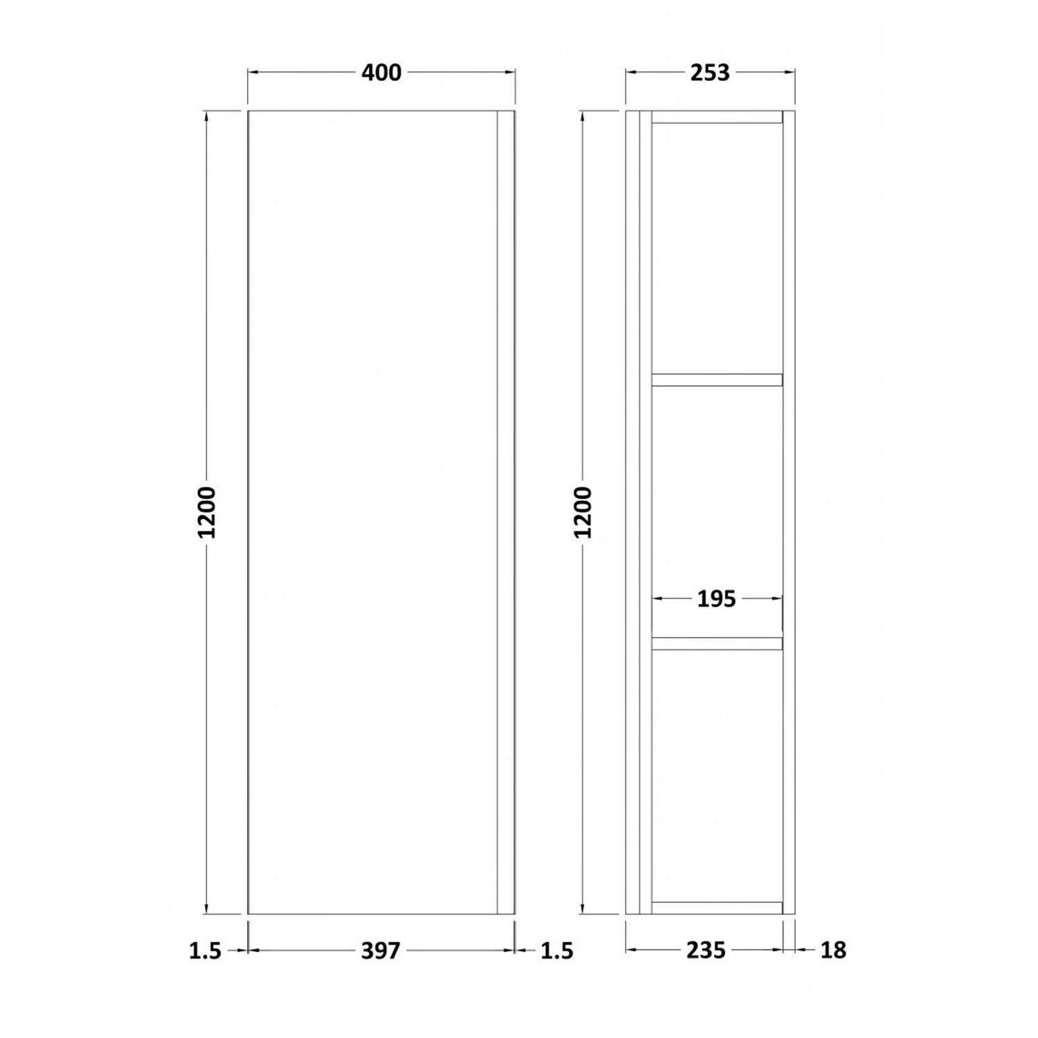 - Cabinet and Fascia Thickness – 18mm