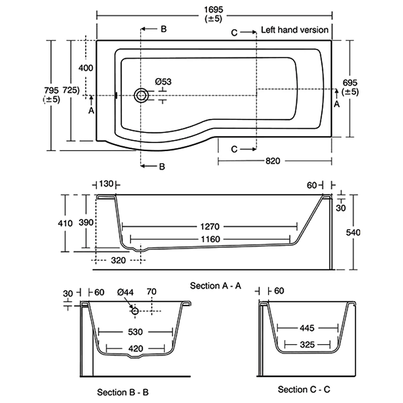 - Right handed bath – the showering end is on the right hand side